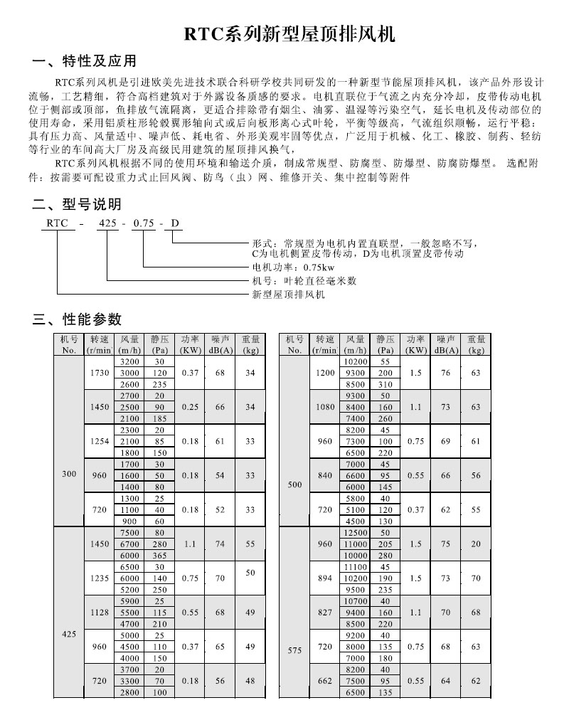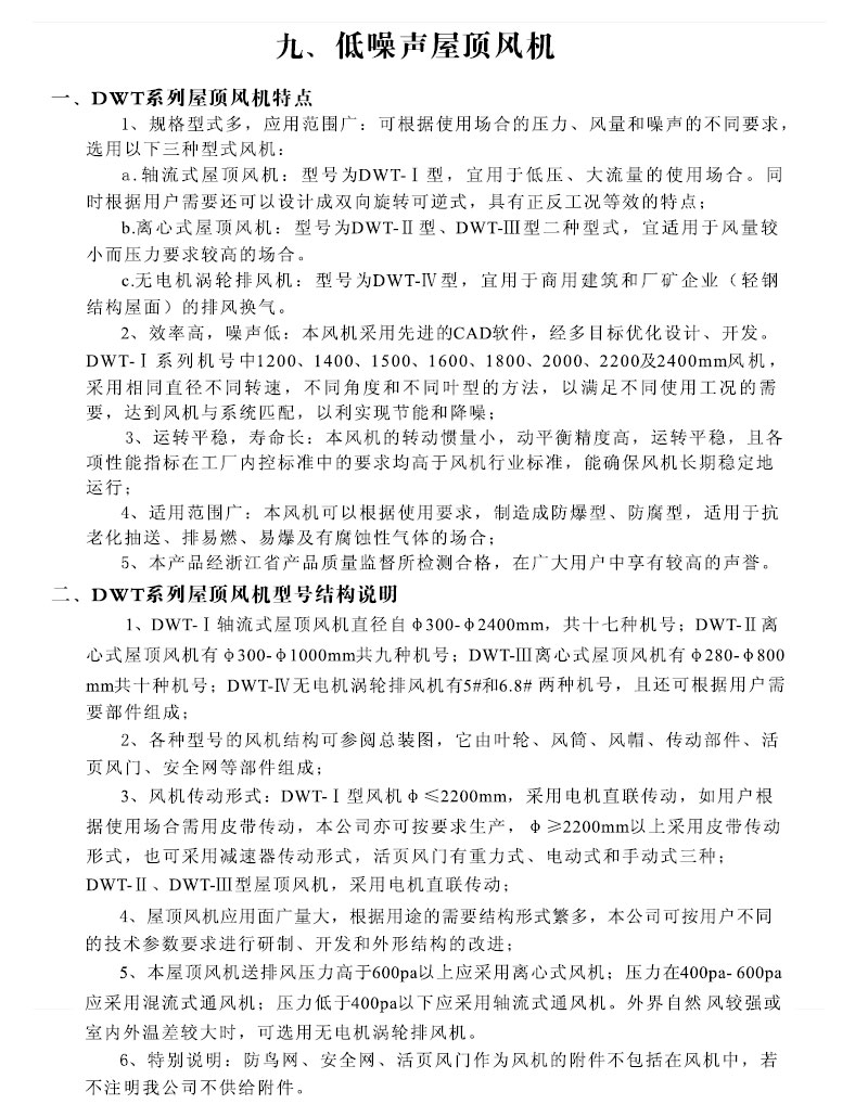 DWT-I、II、III、IV、RSA、RTC系列屋頂風(fēng)機(jī)