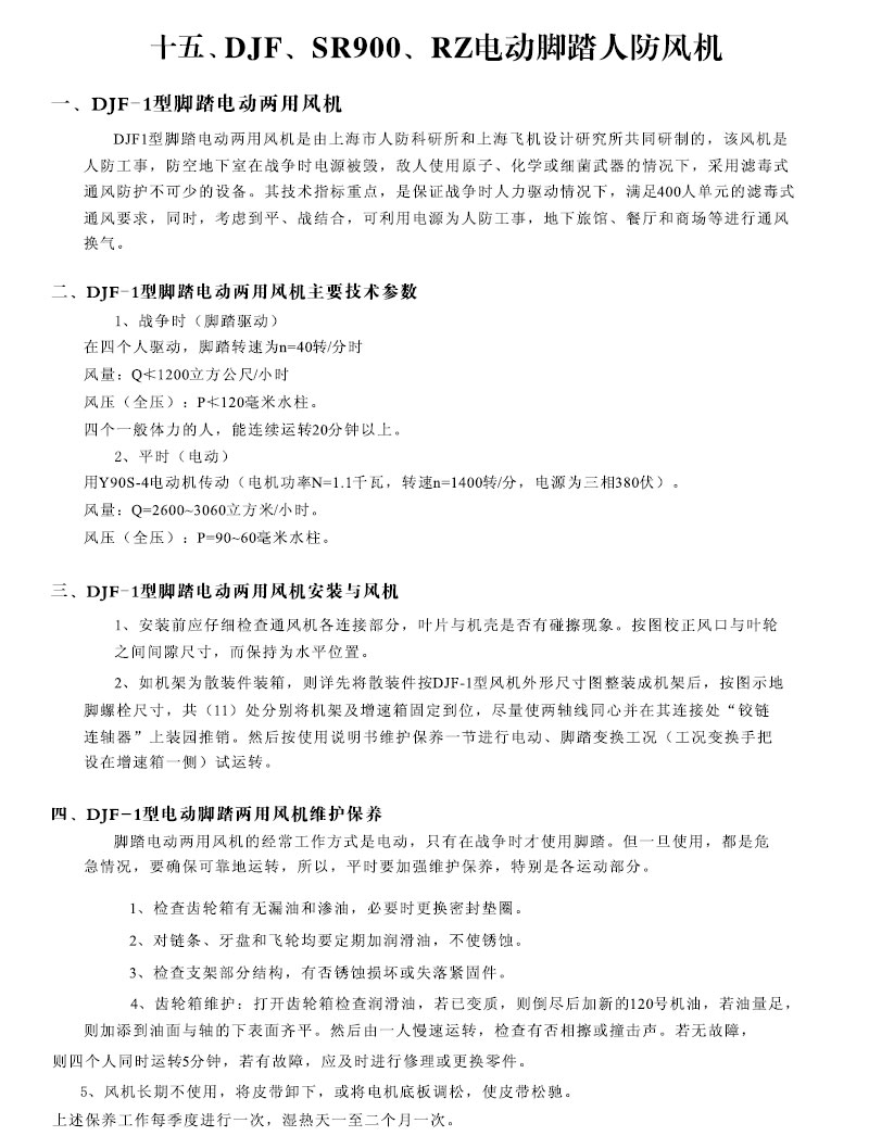 DJF、SR900、RZ人防風(fēng)機(jī)